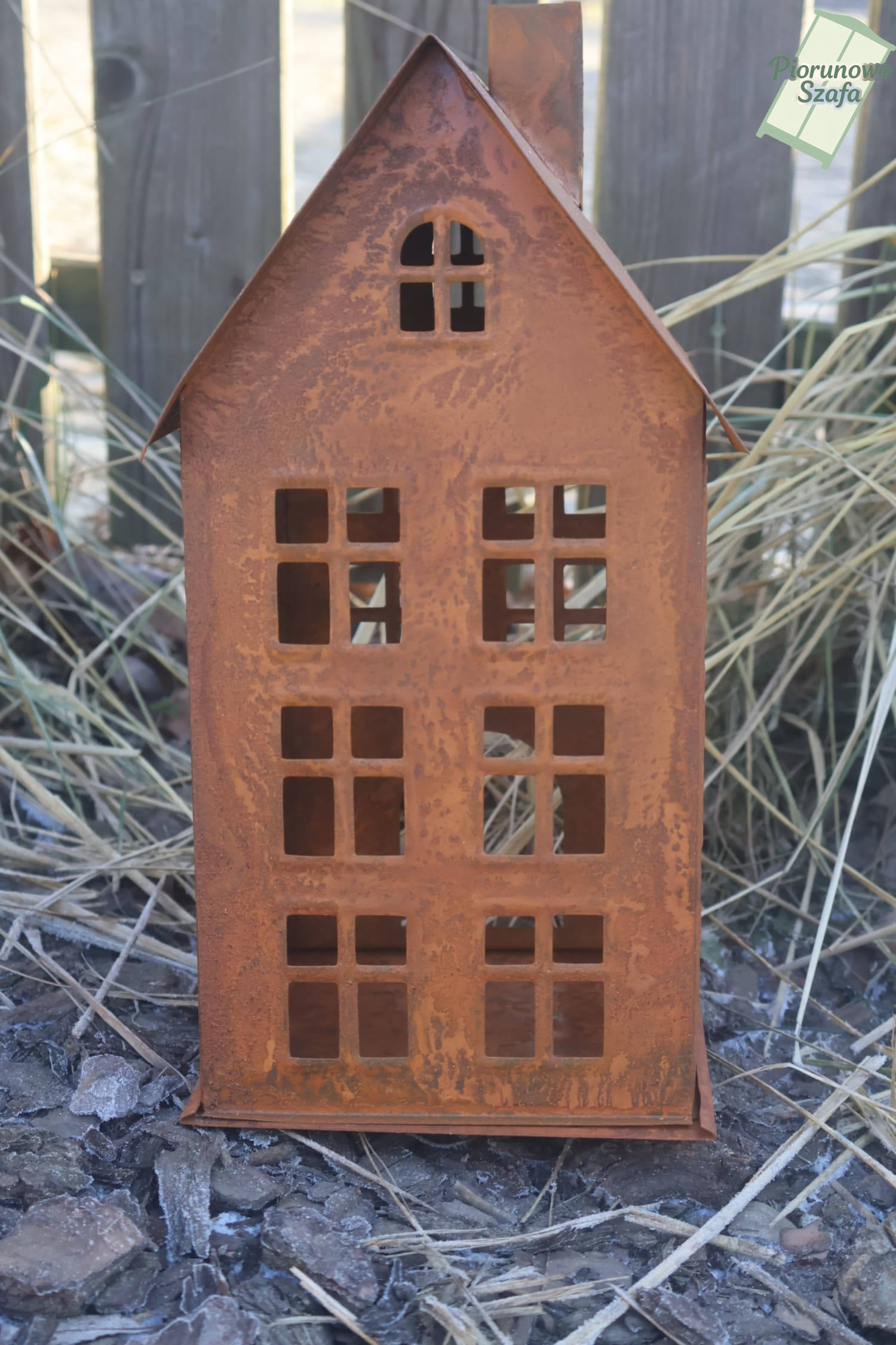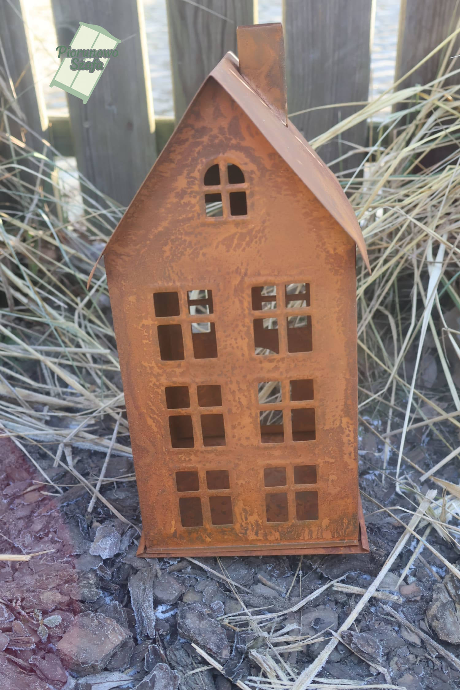 Dekoracyjny metalowy domek – świecznik na tealighty