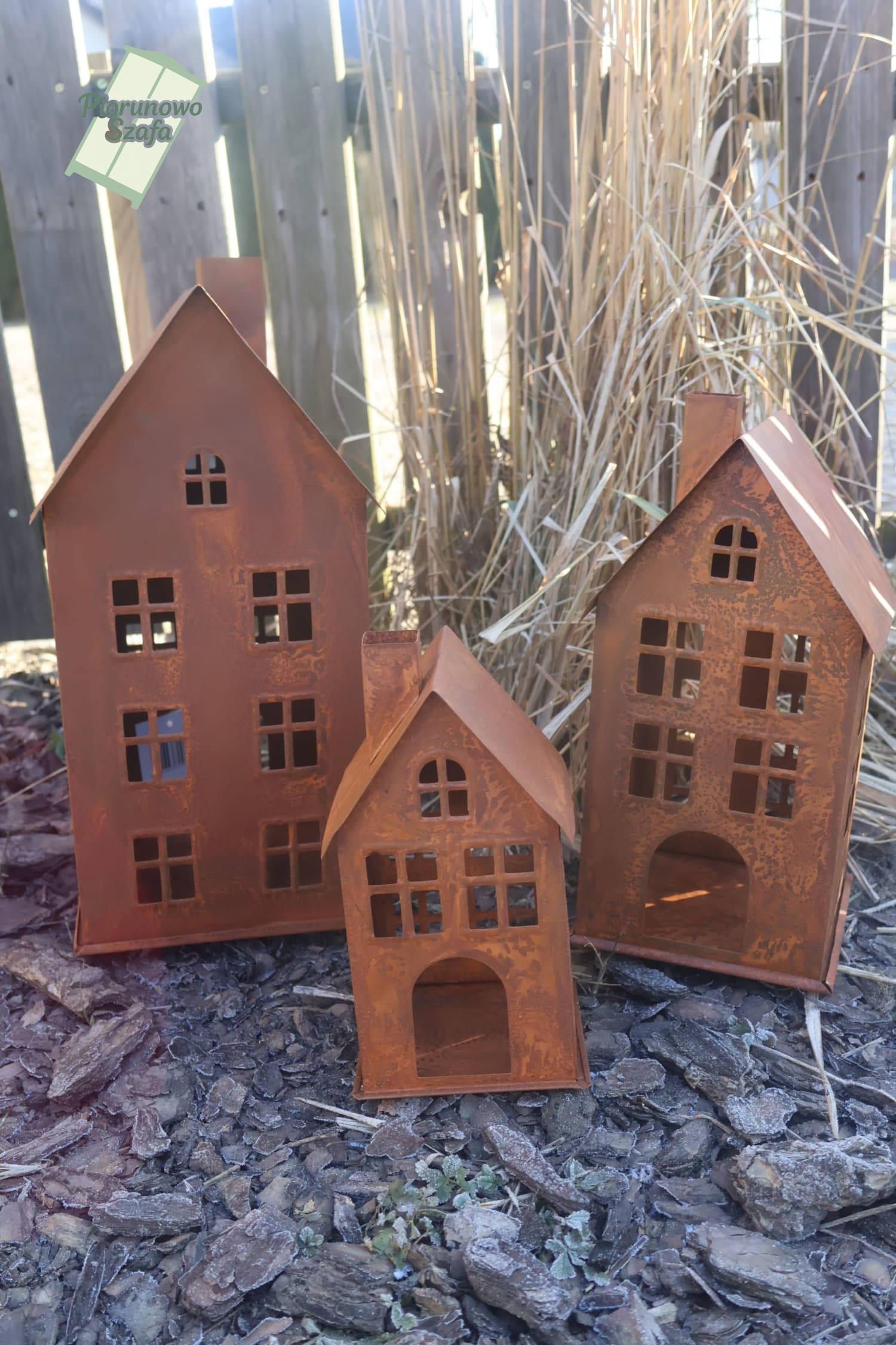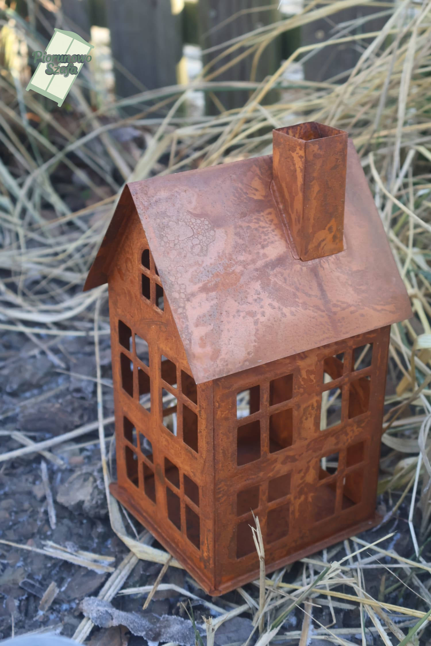 Dekoracyjny metalowy domek – świecznik na tealighty