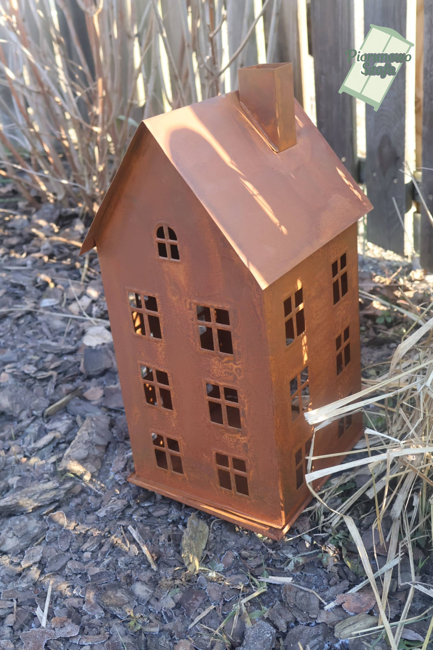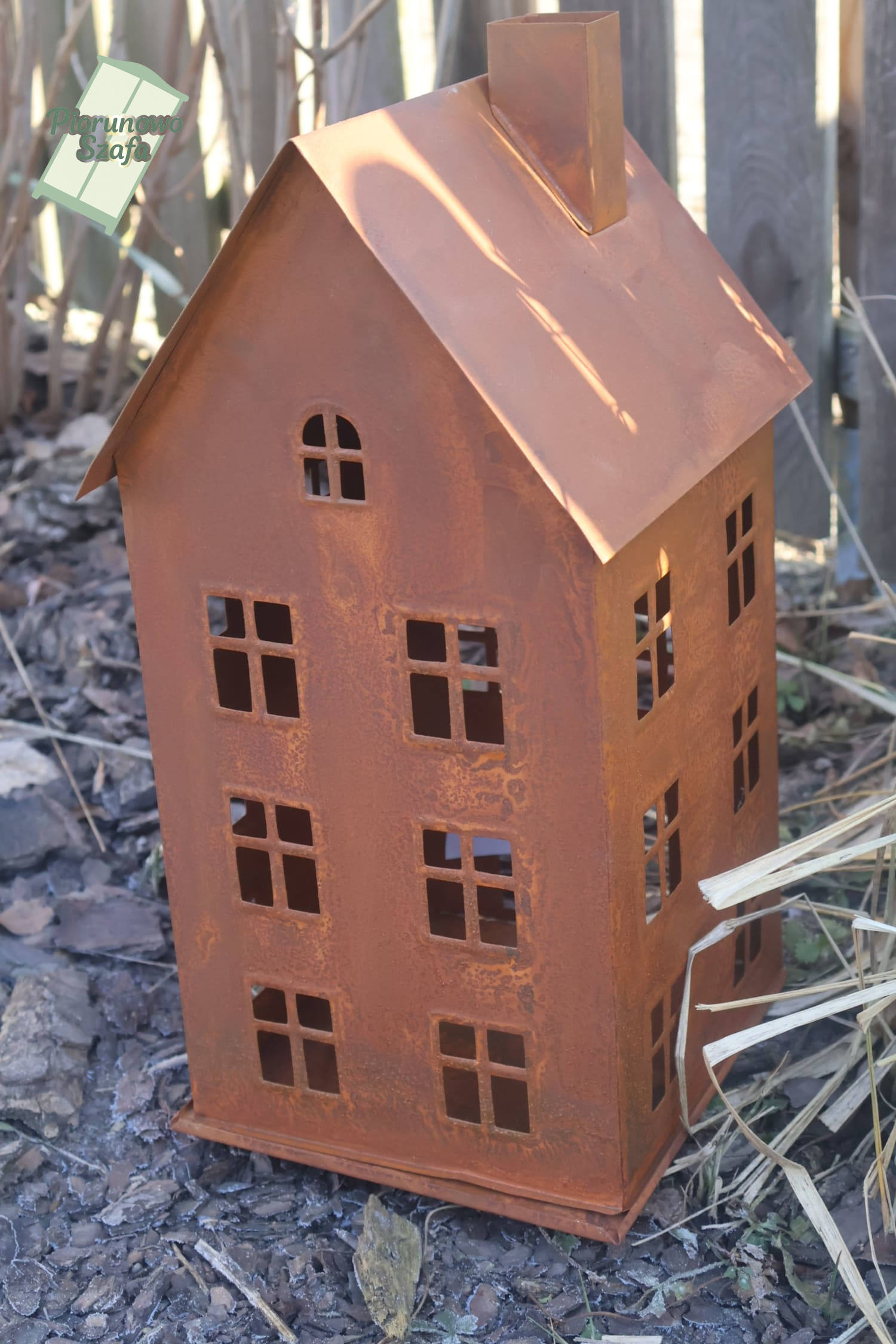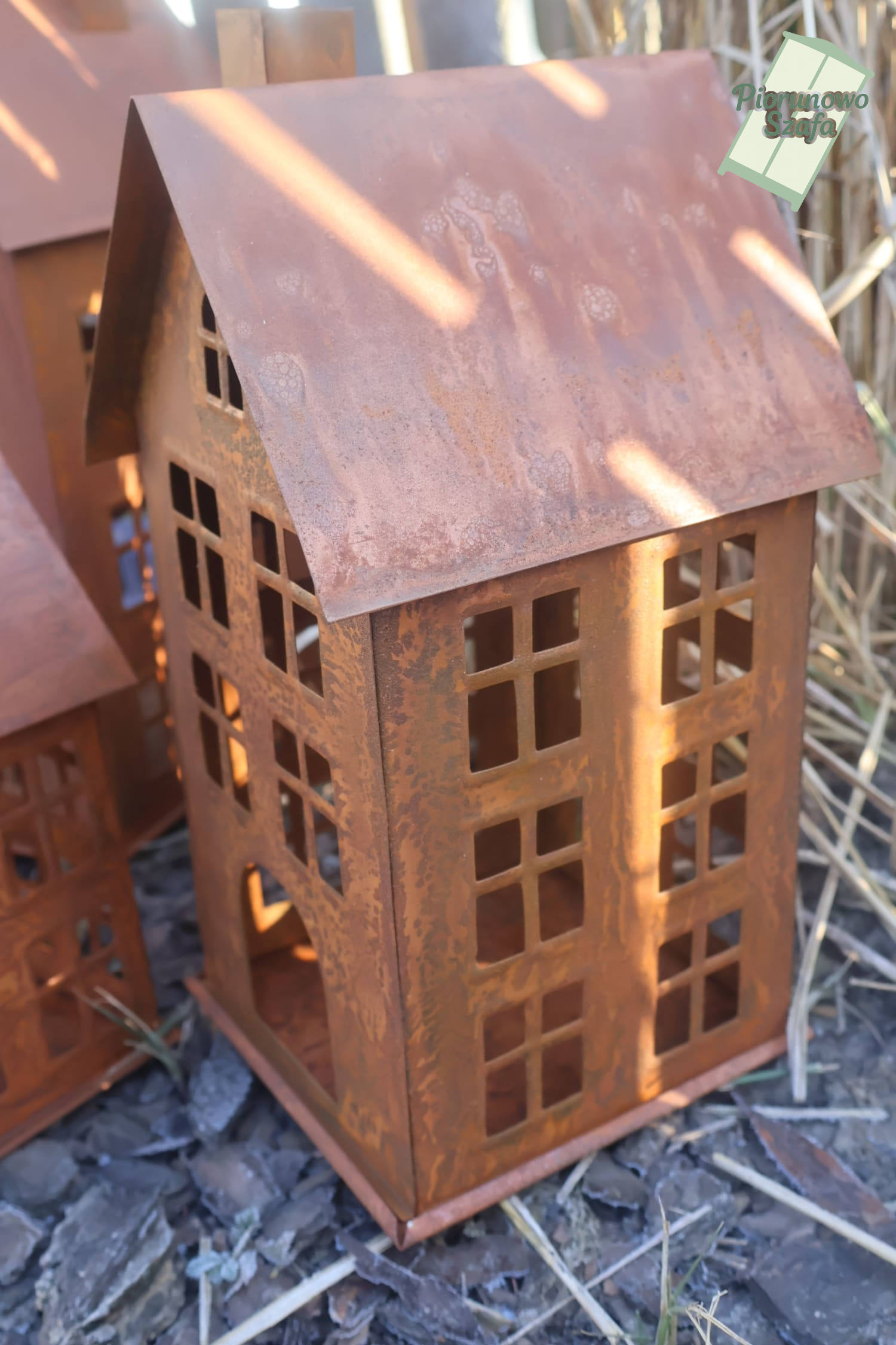 Dekoracyjny metalowy domek – świecznik na tealighty