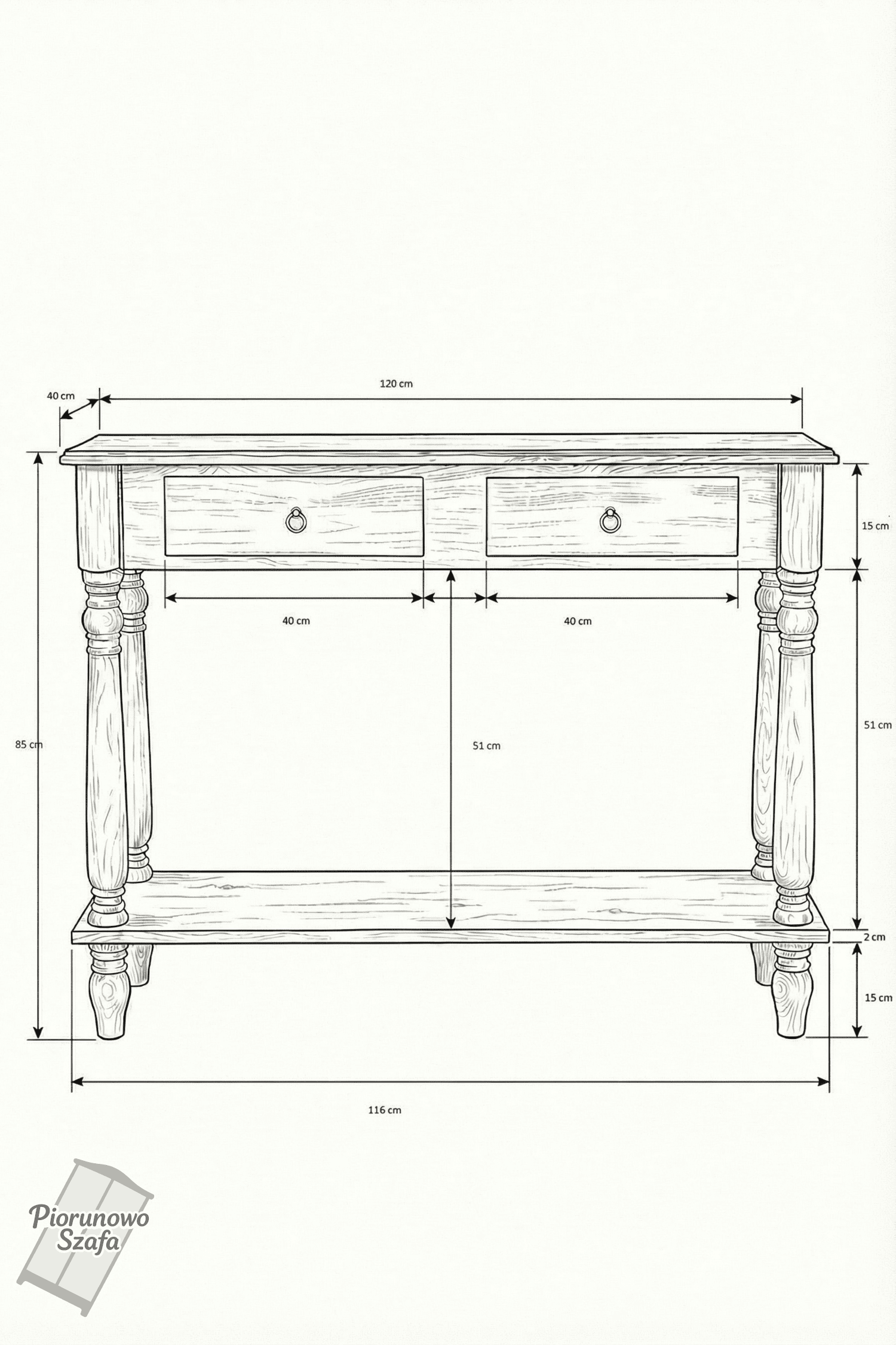 • Stylowe detale: Ozdobne toczone nogi oraz klasyczne uchwyty nadają konsoli elegancji i charakteru. To mebel, który pasuje zarówno do wnętrz rustykalnych, jak i tych w stylu boho czy skandynawskim.