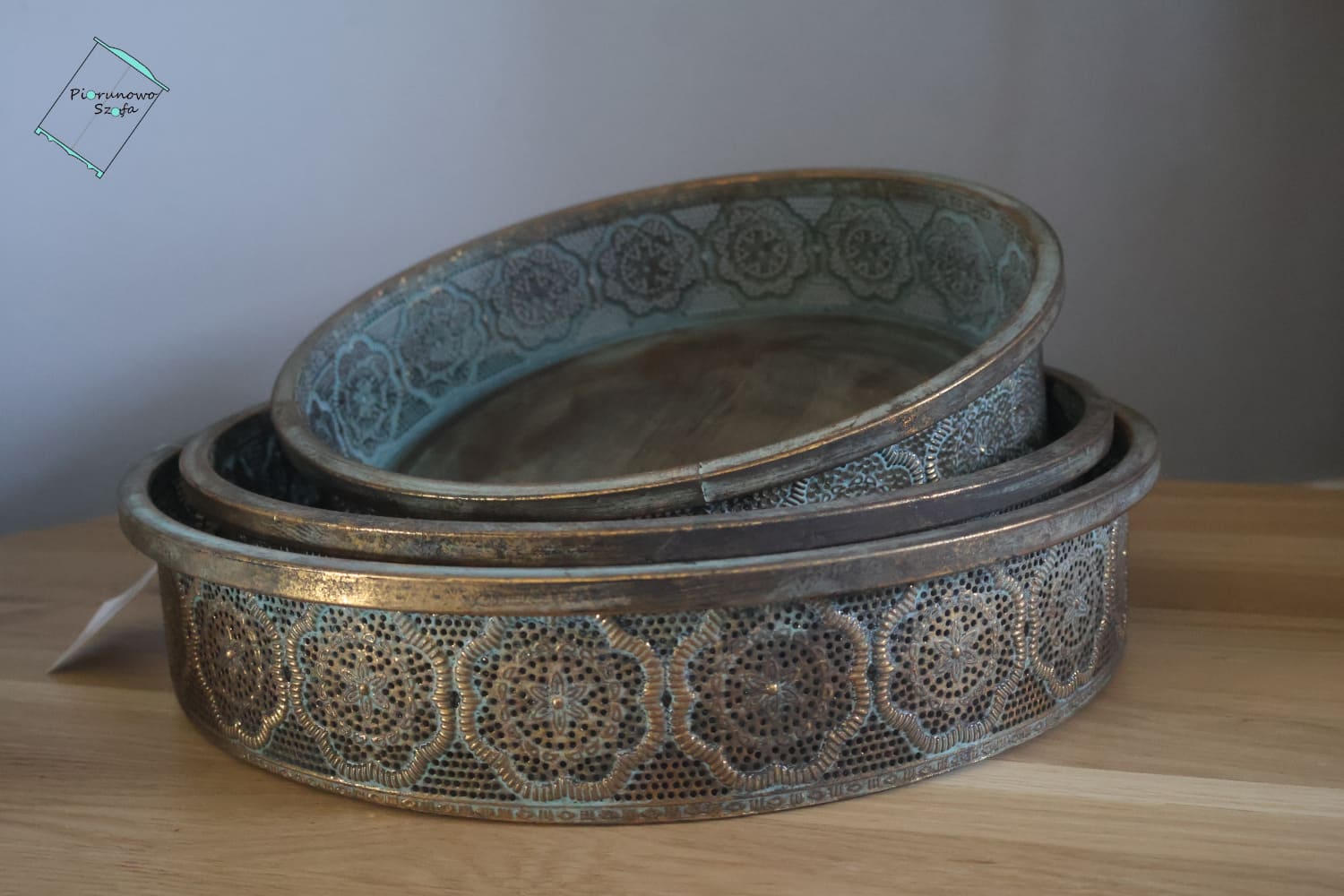 Metalowa taca w stylu vintage ażurowe zdobienie