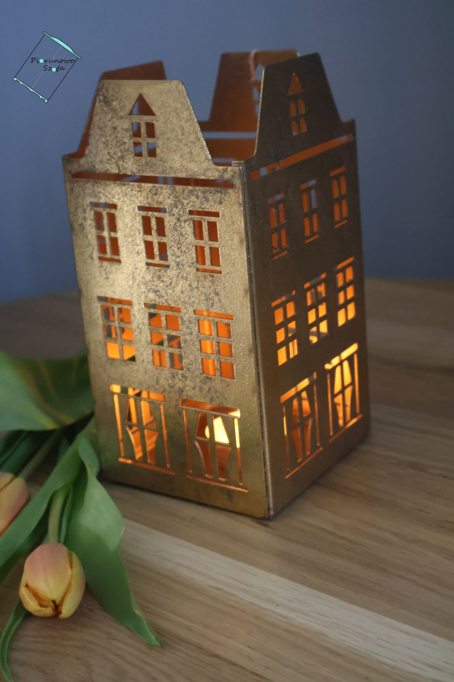Metalowy lampion „Złoty Domek”