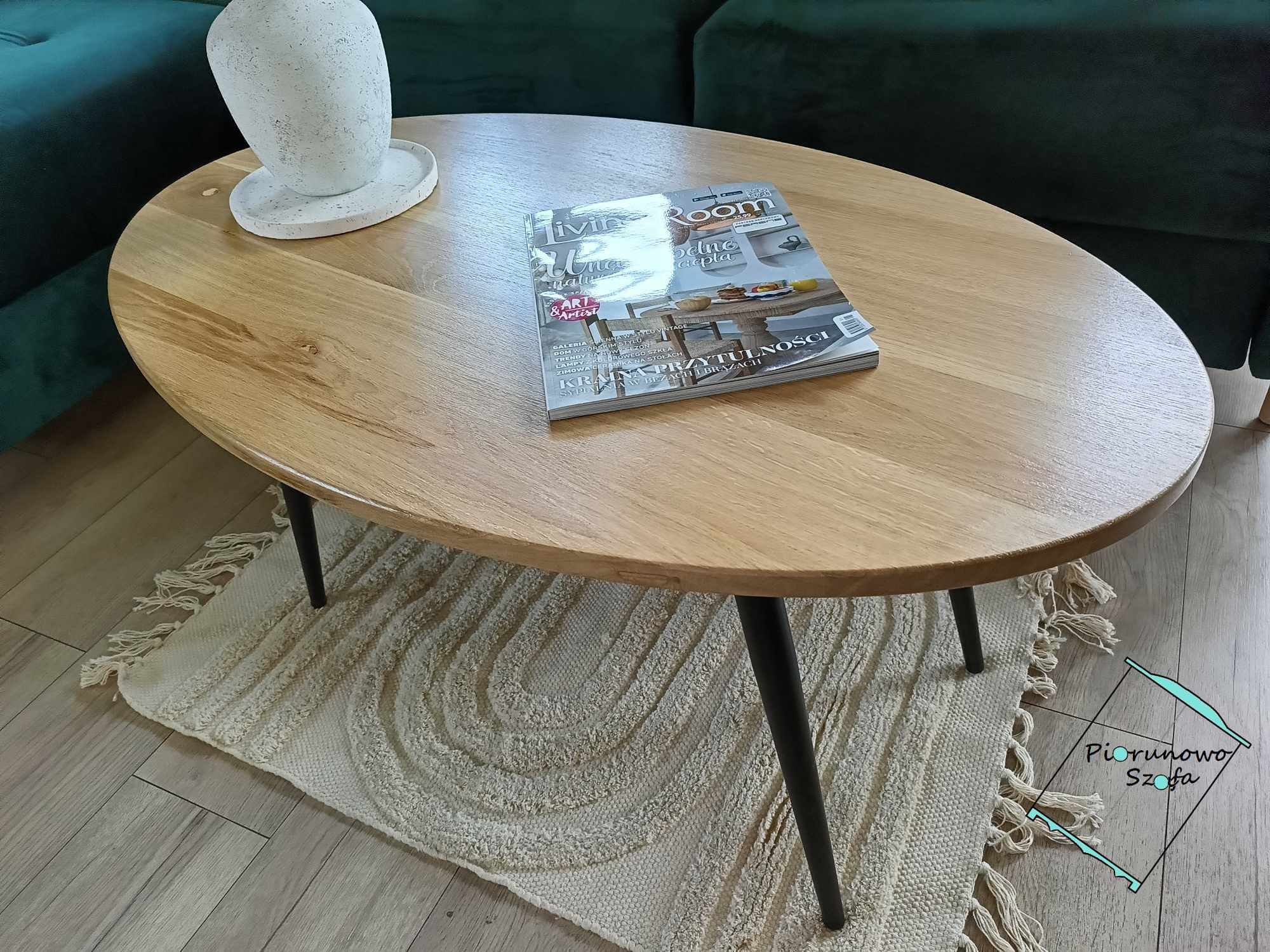 Nowoczesny stolik kawowy owalny jajo lity dąb