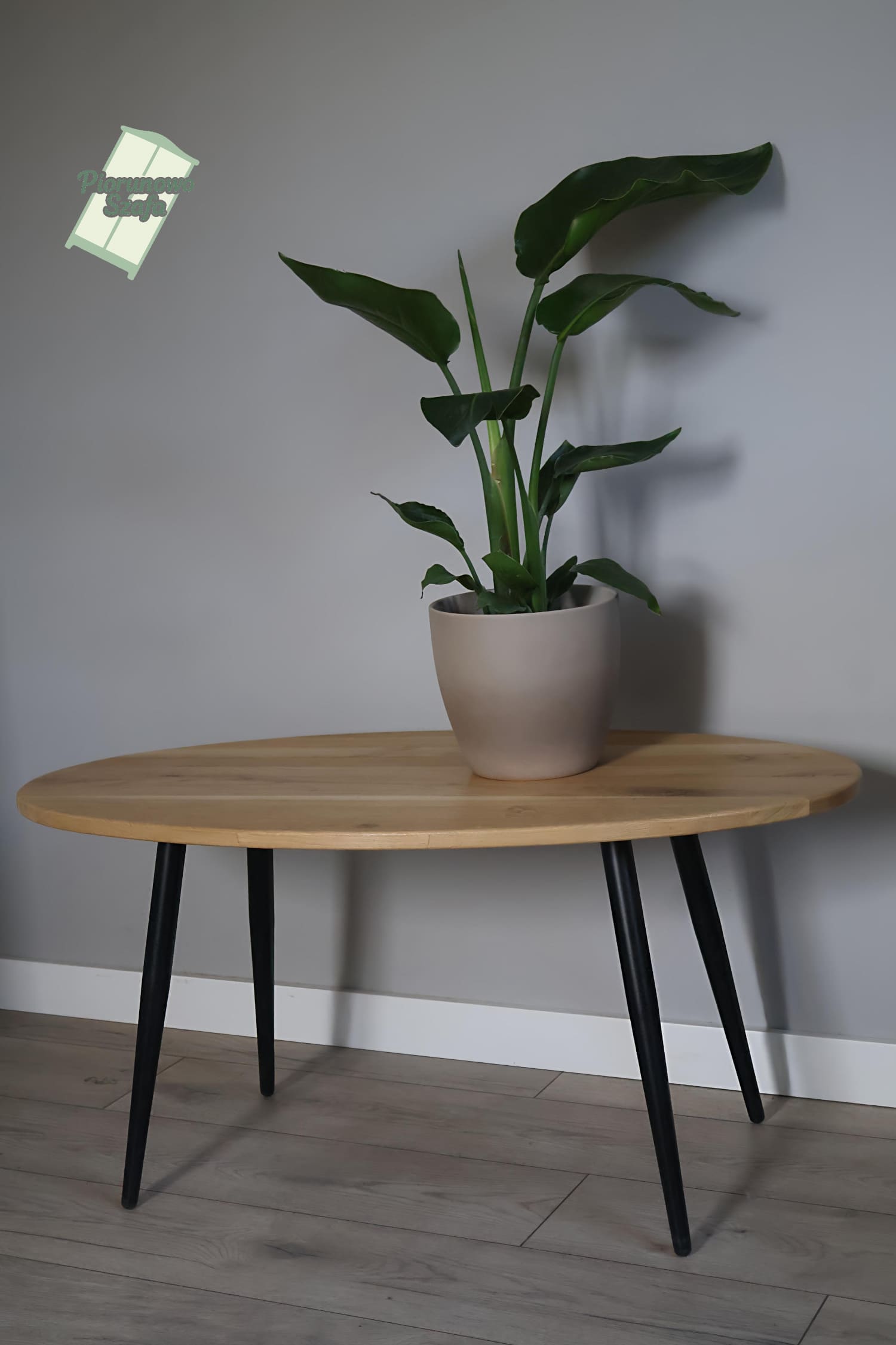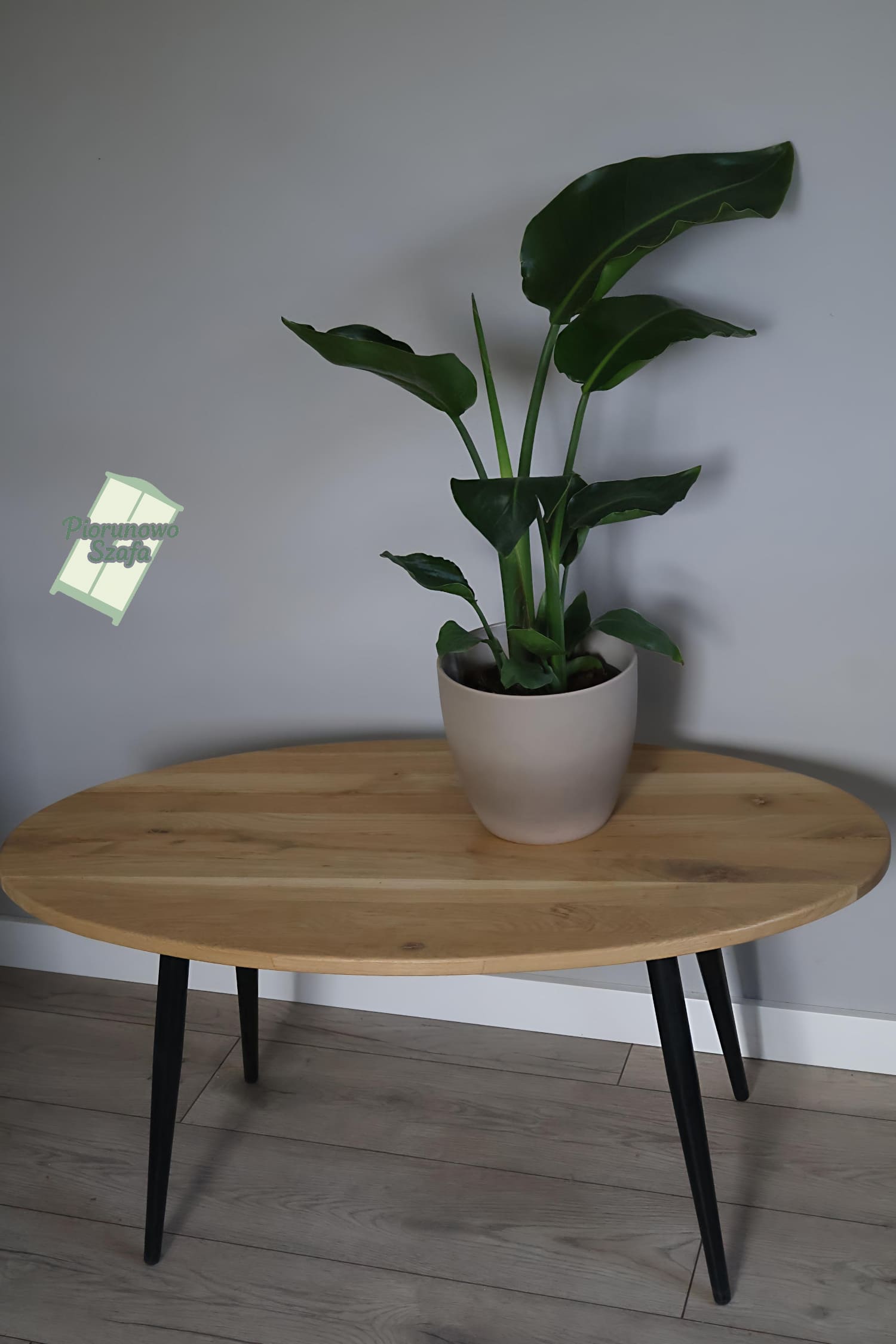 Stolik kawowy drewniany z czarnymi nogami jajo – nowoczesny stolik skandynawski