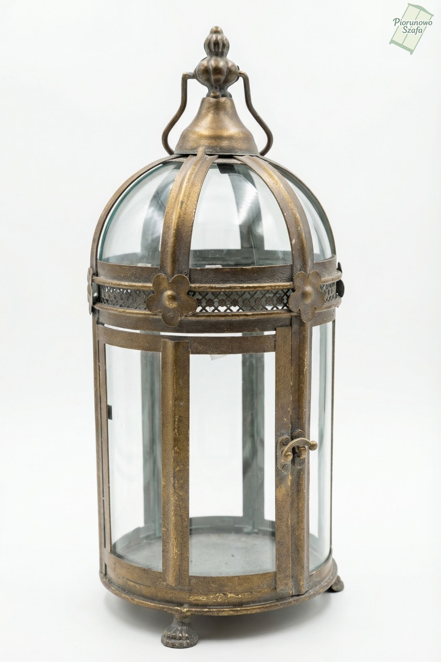 Stylowa latarnia vintage metalowa z szybkami, postarzana