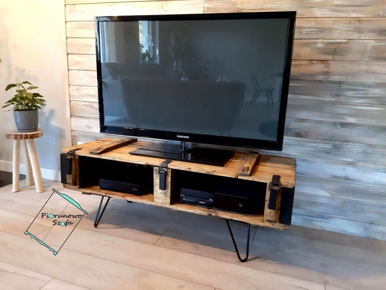 Stolik RTV Retro z Drewnianych Skrzyń – Unikatowy Design i Funkcjonalność