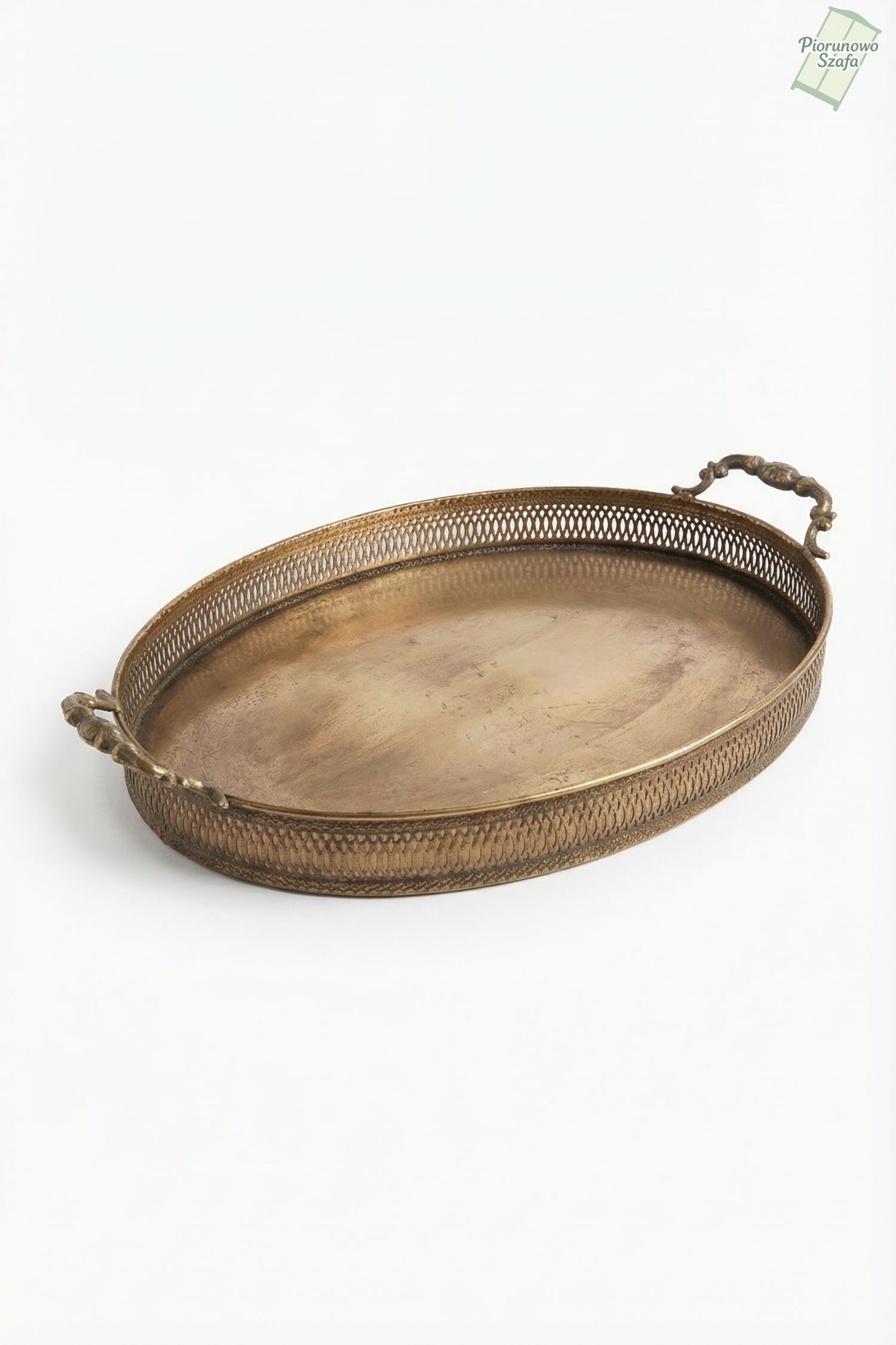 Elegancka i funkcjonalna taca o owalnym kształcie, która wprowadzi do Twojego wnętrza nutę klasyki i wyrafinowania. Wykonana z metalu, w postarzanym odcieniu złota lub brązu, taca emanuje subtelnym blaskiem i vintage’owym urokiem. Jej gładkie dno doskonale kontrastuje z misternie zdobionymi, ażurowymi brzegami, które nadają jej lekkości i delikatności.